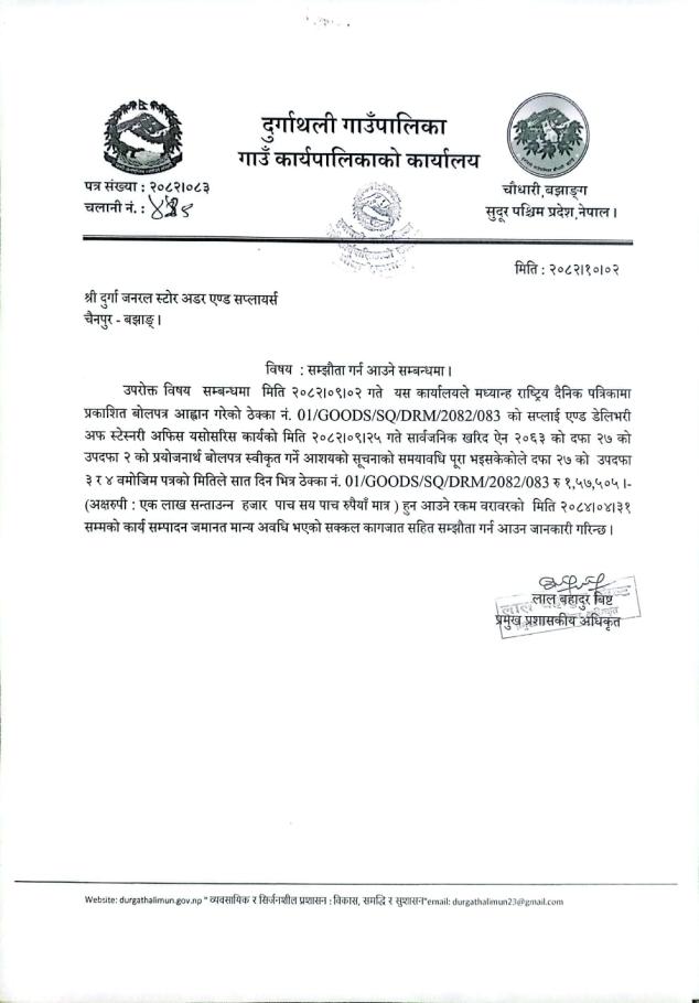 ठेक्का नं. ०१ को सम्झौता गर्न आउने सम्वन्धी सूचना