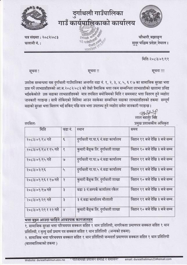 तेस्रो त्रैमासिक सामाजिक सुरक्षा भत्ता वितरण सम्बन्धी सूचना