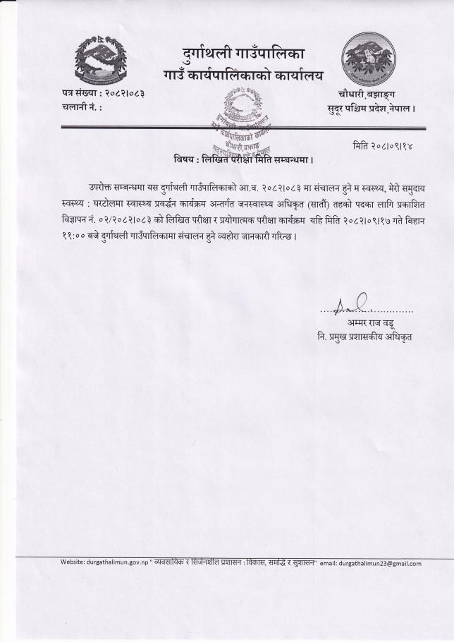 लिखित परीक्षा मिति सम्बन्धमा