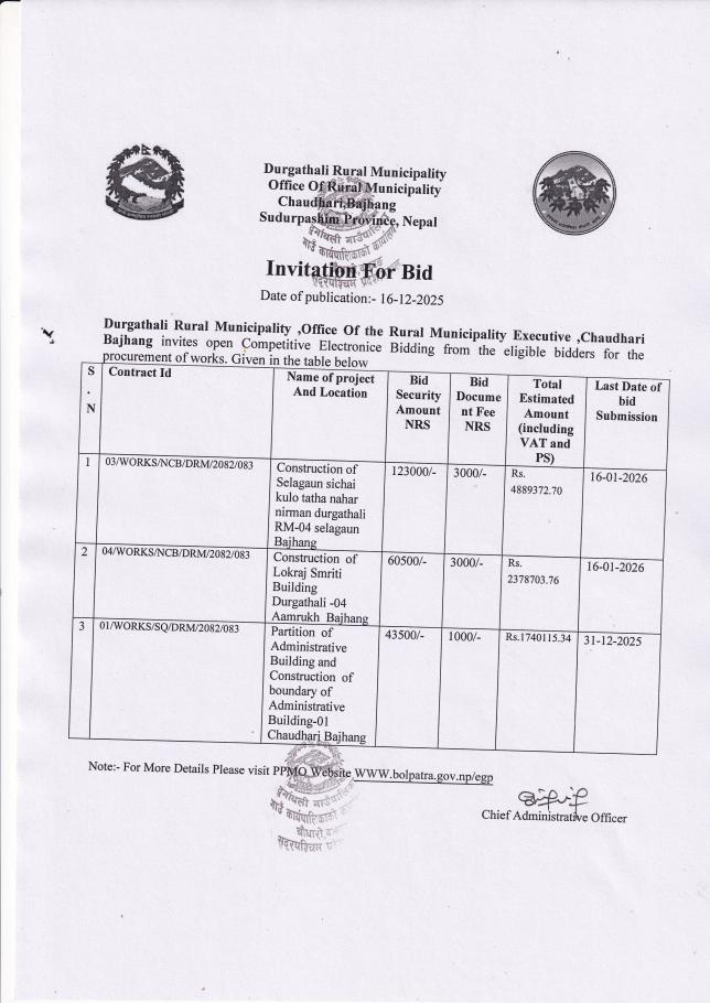 सार्वजनिक खरिद/बोलपत्र सूचना