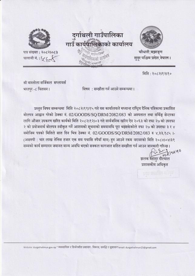 बोलपत्र स्वीकृत गर्ने आशयको सूचना