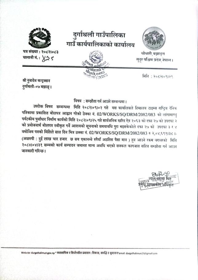 ठेक्का नं. ०२ को सम्झौता गर्न आउने सम्वन्धी सूचना
