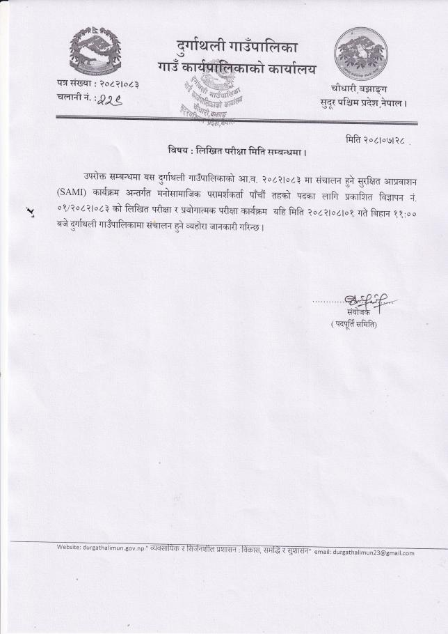 मनोसामाजिक परामर्शकर्ताको परीक्षा मिति सम्बन्धमा