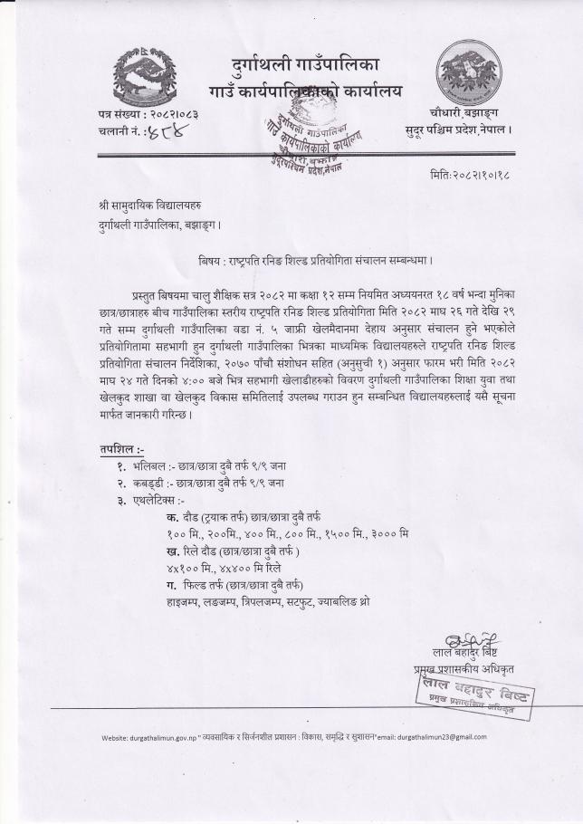 राष्ट्रपति रनिङ शिल्ड प्रतियोगिता संचालन सम्बन्धी सूचना