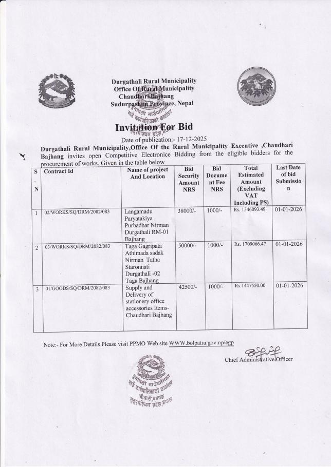 सार्वजनिक खरिद/बोलपत्र सूचना